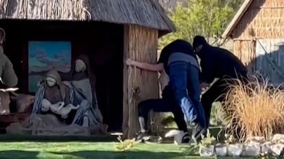 Una activista ucrania de Femen intenta coger el niño Jesús del belén de San Pedro