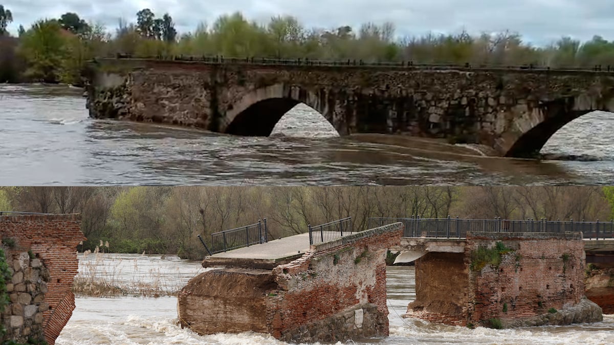 El puente viejo de Talavera de la Reina, antes y después de su derrumbe por la crecida del río Tajo