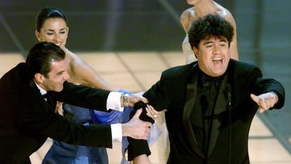 Era el 26 de marzo del año 2000 cuando Penélope Cruz y Antonio Banderas anunciaban al mundo que Pedro Almodóvar ganaba esa noche el Oscar a mejor película extranjera por ‘Todo sobre mi madre’. Sobre el escenario, los tres se fundían en un abrazo que ha pasado a la historia del cine español